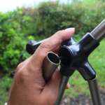 左右をつなぐフレームが楕円になっています。左右の脚がバラバラの方向にならず、フレームを持ち上げてシートを被せるようなときにイラッとしません。