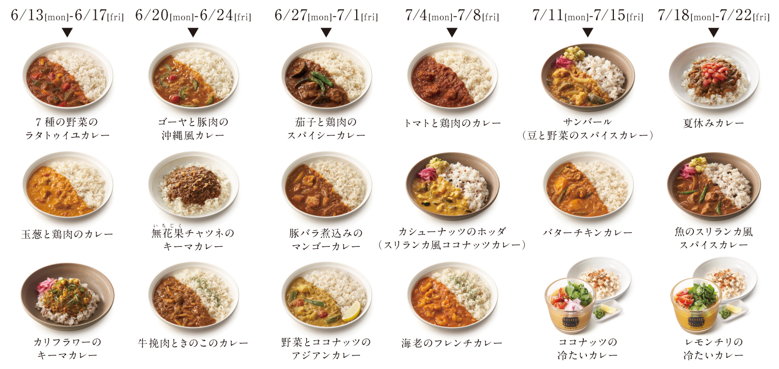 また、6月13日からは3週間ごとにカレーの新メニューを投入。開催期間中はご飯(カレーに相性のよい十穀ごはん)をはじめ、数量限定のナン、カレーと相性のよいオリジナルビール、4種のラッシーもラインナップ。Soup Stock Tokyo全店にてカレーを毎週3種類、週替わりで計18種類のカレーを販売するという、まさにSoup Stock Tokyoがカレー色に染まるユニークなキャンペーンが実施される。