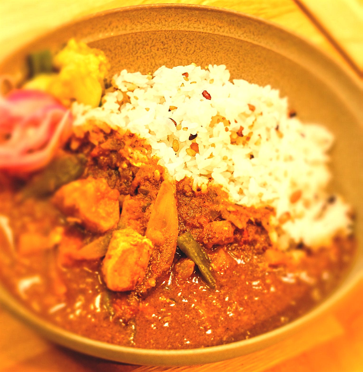 厳選素材をふんだんに使い、うわさによると時には原価率を無視しながら完成するオリジナルカレーは、「7種の野菜のラタトゥイユカレー」「ゴーヤと豚肉の沖縄風カレー」など、他のカレー専門店では出会えないユニークなアレンジも特徴的。丁寧な下ごしらえや手をかけたレシピがおのずとファンの心を掴み、いまや週替わりのメニューに必ず1種類はラインナップされる人気メニューのひとつである。