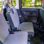 一方のリアシートは、スペーシア用ではなくワゴンR標準車用をベースとする。そのためスペーシアより着座位置が低く、ワゴンRと同等となる。その分、スペーシアより低く座ることになるが、これにより頭上空間の広さを感じさせてくれる。