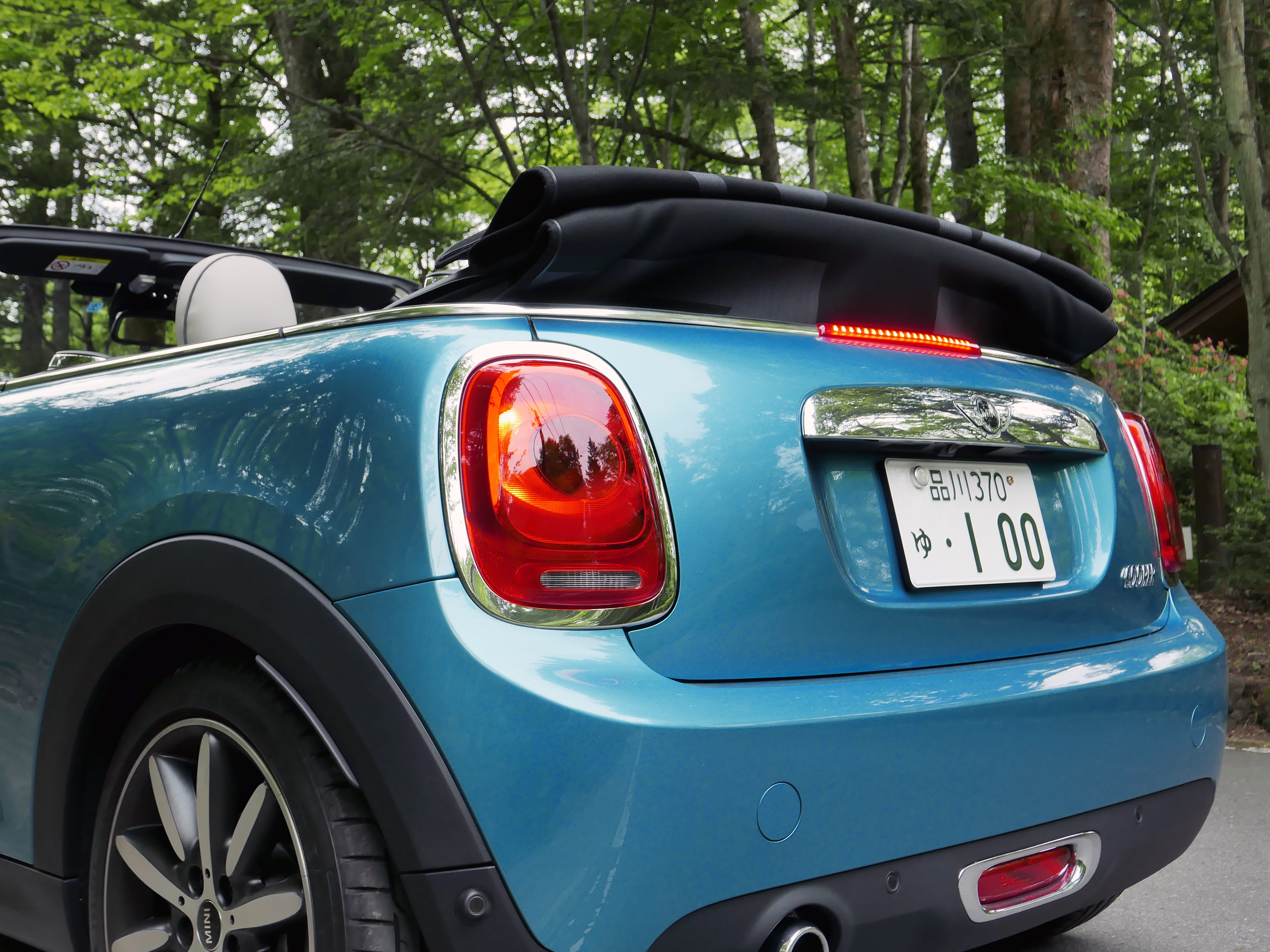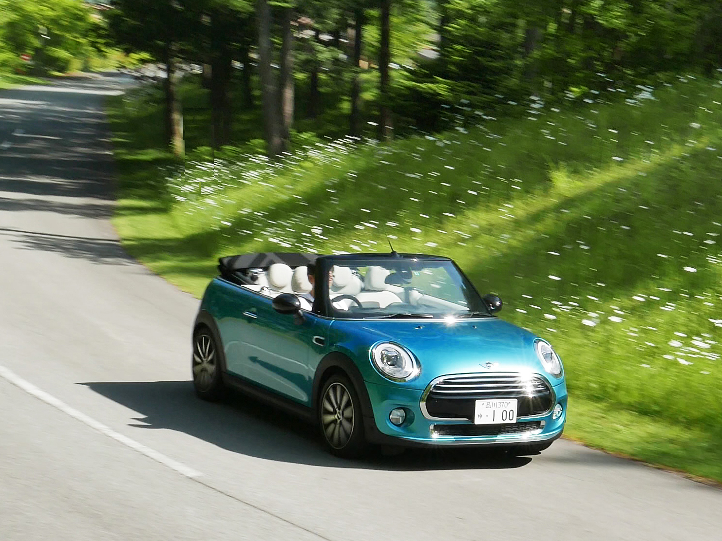 ガソリンスタンドで給油した時、お店の女性スタッフから「この色大好きなんです!」と告白された明るいボディカラー(カリビアンアクア メタリック)も手伝って、電動ソフトトップを開け放つと、まあ、気分の上がること。
