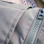 そして最大の特徴であるナンガ独自開発素材の“TAKIBI”。難燃素材の弱点といわれる水や汚れの付着を考慮し、アラミド繊維とポリエステルの素材をナンガ独自の考えに基づいてバランス良く混合。丈夫さと高い難燃性があり、焚き火によって舞う火の粉の影響を受けづらいだけでなく、水や汚れにも強い生地になっています。難燃と言われないとわからないくらい、コットンライクな質感もポイントです。
