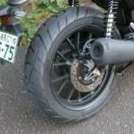 もうひとつ、スタンダードと「S」の大きな違いがタイヤです。スタンダードはフロント19インチ、リア18インチのバイアスタイヤを履いていますが、「S」はリアタイヤが17インチで幅も130から150へと太くなっています。そして、標準装備されるタイヤも剛性が高くグリップの良いラジアルに。