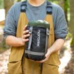 付属されているスタッフサックに収納すれば、持ち運びに便利な筒型のコンパクトサイズに。