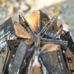 手に入れた広葉樹の薪が「ハイドロボンファイア」のプレートに対してやや細かったのでしょう、隙間が目立ちます。太さが足りない薪は2本ずつ立て掛けることで隙間が埋まり、もっとスウェディッシュトーチっぽくなります。