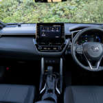 カローラクロスの運転席に乗り込んでみると、ダッシュボードの造形などはカローラのセダンやワゴン(「ツーリング」)、そしてハッチバック(「スポーツ」)と同じだが、SUVらしく高めのドライビングポジションが新鮮だ。SUVを選ぶ人の多くは、運転席からの見晴らしの良さを求めているというが、それがカローラクロスでもしっかり味わえる。