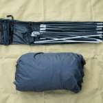 中には黒色アルマイト処理を施したフレーム4本と、インナーテント、フライシート、V型ペグ19本が入っています。