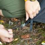 ポールを受け止めるのはグロメットではなく、金属のパーツです。フレームエンドがボール状になっているので、ひとたび金属パーツに差し込むとフレームを内側にずらさない限り抜けることはありません。つまり、ソロでもたてやすいテントってこと!