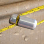 手を離すと、ロープに掛かったテンションで金属パーツが傾き、ピタッと止まります。張り綱の「自在」のようなものだと思ってください。このパーツによって、自在結びができなくてもしっかりロープにテンションを掛けられる。重いギアを吊り下げてロープが緩んだ場合も、簡単に張り直しができます。このあたりはさすがmuraco。金属加工工場が手掛けるブランドだけあります。