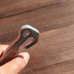 幅広のヘッドで打ち損じしづらい形です。それに板状なのでハンマーで打ち込んでいるうちに張り綱を引っ掛けるフックの位置が回転するなんてこともありません。