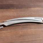 ▲全体にゆるやかな弧を描く板状ペグ。SS400・クロムメッキの美しさも自慢