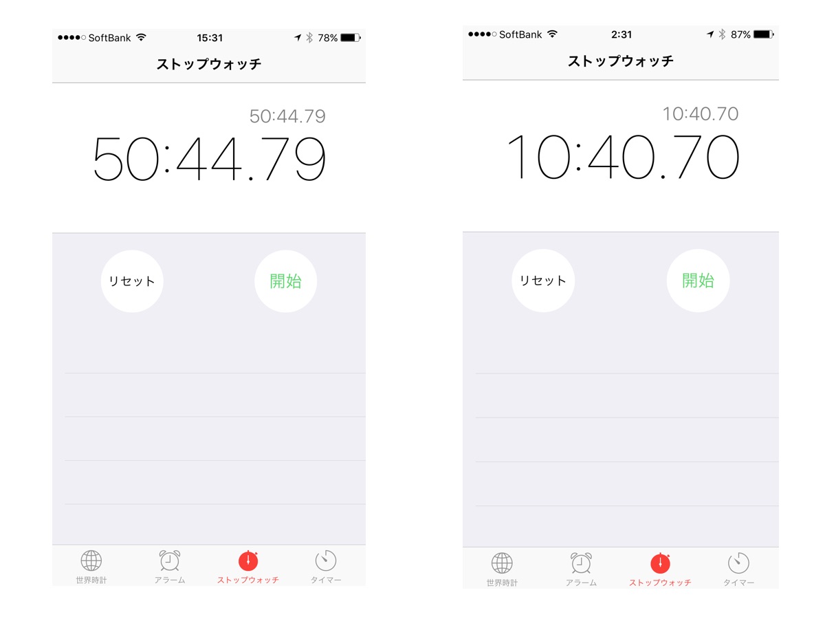左:標準モード使用時間/右:強モード使用時間