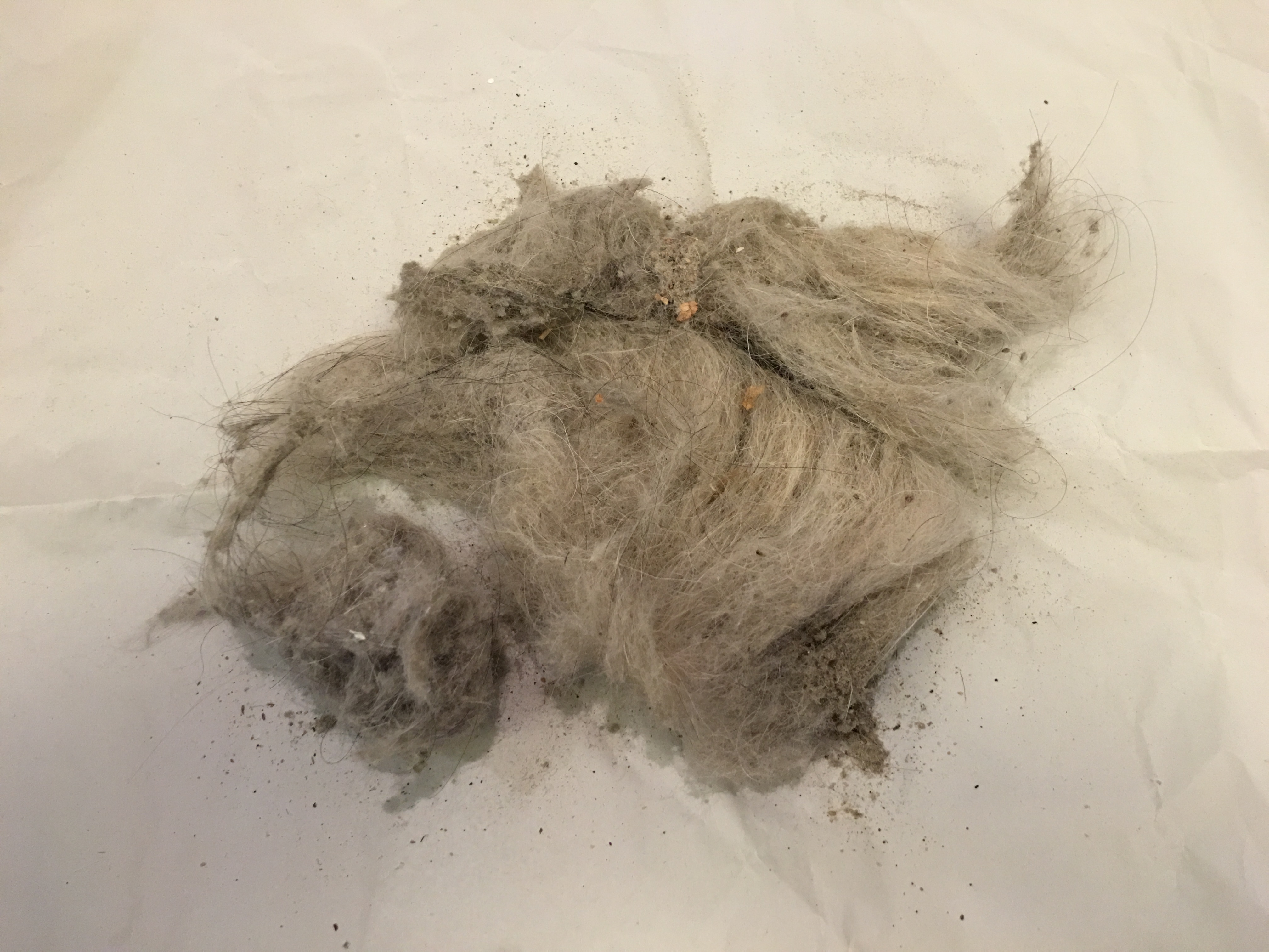 最後に、集じんの成果をご紹介しておきましょう。今回50分の掃除で取れたホコリが以下の写真です。歴代のダイソンもよくホコリを取ってくれていたので、不満はありませんでしたが、さらに満足の結果となりました。