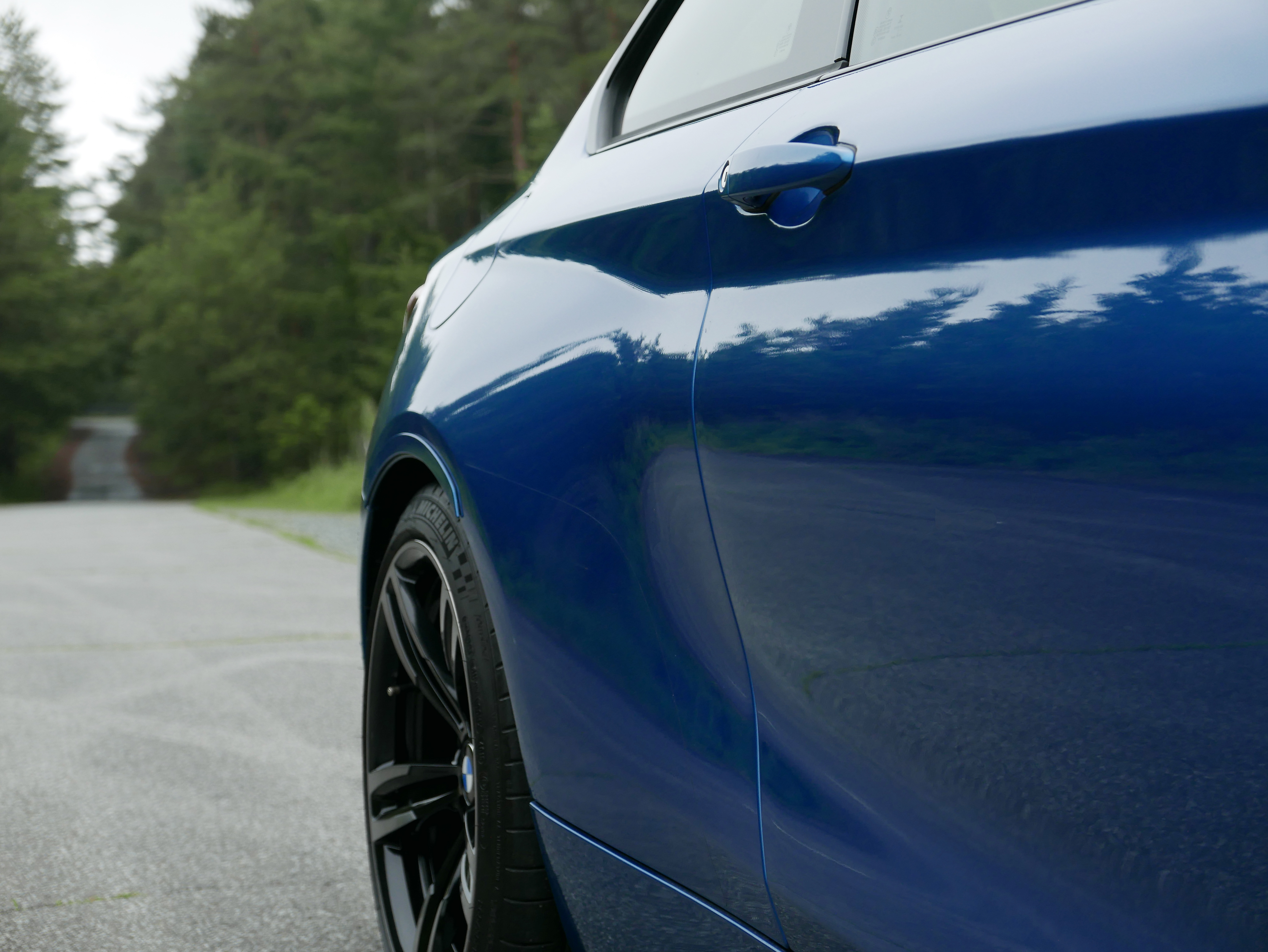 M2のボディサイズは全長4475mm、全幅1855mm、全高1410mmです。その全長は歴代3シリーズでも名車中の名車“E46型”(4世代目3シリーズ)ベースのM3(全長4490mm)とほぼ同じなのに、全幅とトレッドがM4とほぼ同じなのは、サスペンションがM4と同じだからです。M2は全長とホイールベースが短くて、全幅とトレッドが広いのです。これはある意味、ヤバいディメンションです。