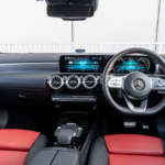PHEVといえばエコカー、というイメージが強いが、A250eの内外装にエコカーらしさは皆無。ガソリンエンジンを搭載する「A180」やディーゼルターボ車の「A200d」ではオプション扱いとなる「AMGライン」が標準装備されており、大きく口を開いたフロントバンパーやサイド&リアスカートが装着された上、18インチのタイヤ&ホイールを履くなど見た目はスポーティグレードそのものだ。