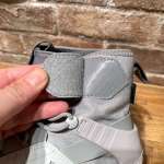 フィット感の高いブーティ構造ですが、履き口には大きく開くベルト仕様で脱ぎ履きはラクチンです。