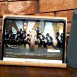ただ、これらを上回ったのがJBL「CHARGE 5」。音のクリアさや再現性は「FLIP6」そのままに、さらに余裕たっぷりで轟音のような重低音を鳴らしてくれるスピーカーです。iPadをスタンドに乗せて斜め上向きにして置くと、モノとしての存在感を主張しつつも上手くマッチします。