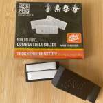 そして、エスビット固形燃料スダンダード(4g)を2コ、タブレットコンパートメントに載せてスタンドの中央にセット。ちなみにタブレットコンパートメントにはフタが付いています。コーヒーの抽出が終わっても火がついているときはフタを載せて消火させます。