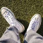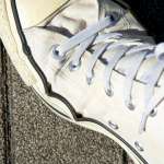 リペアサービスに持ち込んだ愛用のオールスターがこのメイドインジャパンモデル。最もベーシックなオールスターとの違いはシルエットにあります。