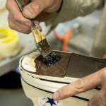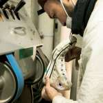 何度も削り、微調整を加え、補強パーツを貼り付けます。この接着剤もオリジナルの配合で作成したものを使用しているんだとか!