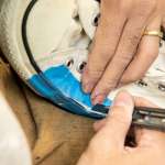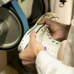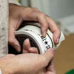 ソールとアッパーの間に入った汚れを取り除き、コンバースオリジナルのラスト(木型)を使い成形しながらテープを圧着させます。オリジナルのラストがあるっていうのも公式リペアサービスの強みですね。