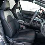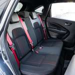例えば、コンソールは単に赤いパネルをあしらうのではなく、カーボン調パネルの中に赤い糸を織り込んだパターンを採用し、洗練された大人っぽさを演出。一方、大胆に“赤”をあしらっている部分としては、シートベルトが挙げられる。カラータイプのシートベルトは日産車としては初採用。こだわりのディテールを見ても、オーラNISMOは攻めたモデルであることが分かる。