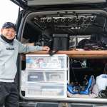 5年ほど前にコンパクトカーからハイエースに乗り換えたという渡邊さん。ハイエースはプロフィッシャーの諸先輩方も愛用する憧れの車で、できるだけお金をかけず、DIYでカスタムを楽しむのがテーマなのだとか。