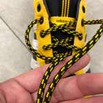太めの丸ヒモのシューレースでアレンジして、トレッキングシューズのようなワイルドなテイストに。