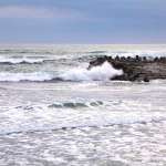 ▲砂浜に突き出た、「ヘッドランド」と呼ばれる構造物の周りはヒラメの一級ポイントなのだそうです