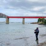 今回、渡邉さんがポイントに選んだのは、太平洋に注ぐ一級河川の河口部。大河の先に太平洋の大海原を望むダイナミックな景観ですが、サーフよりも魚のいるポイントが近いので初心者でもゲームが成立しやすいのだとか。