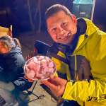 日も落ちかけて、寒さが増してきたのでタイムアップ。結局、プロの渡邊さんがビシッと釣り上げてくれましたが、ここでベースキャンプへ帰投。冷えた体を焚き火で温めます。