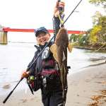そこで渡邉さんは同じワームに速攻でチェンジ。ブレイクの先にキャスティングし、しっかり底まで落としてから小魚が泳ぐようにゆっくりと誘っていくと……。