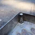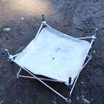 アルミのフレームを広げます。テーブルによくある構造ですが、四隅の突起が長めで、フレームの途中に小さな突起が付いています。そこにまず、付属のヒートシールドを取り付けます。