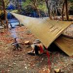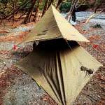 張り方や工夫次第では、台風レベルの雨でも可能なのですが、その場合はフルクローズになるような幕、正方形の軍幕であれば4枚必要で、パップテント型であれば2枚、ティピー型であれば2枚あれば、ほとんどの雨はしのげます。