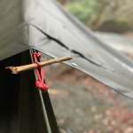 ちなみに、雨避け用の幕を最後に固定したのは、ステップ2で張った、居住用の幕に対して微調整をするため。張り縄上であれば自由に動かせるプルージック・ノットにすることで、張りの調整が可能になります。