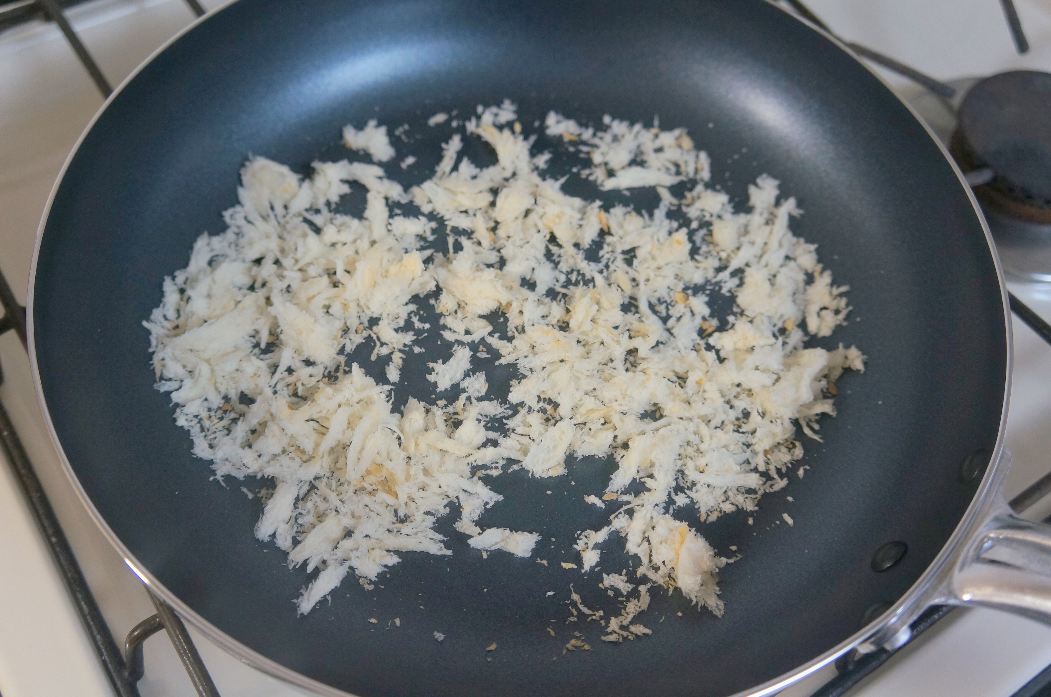 続いて、パン粉をフライパンで油を引かずに乾煎りします。