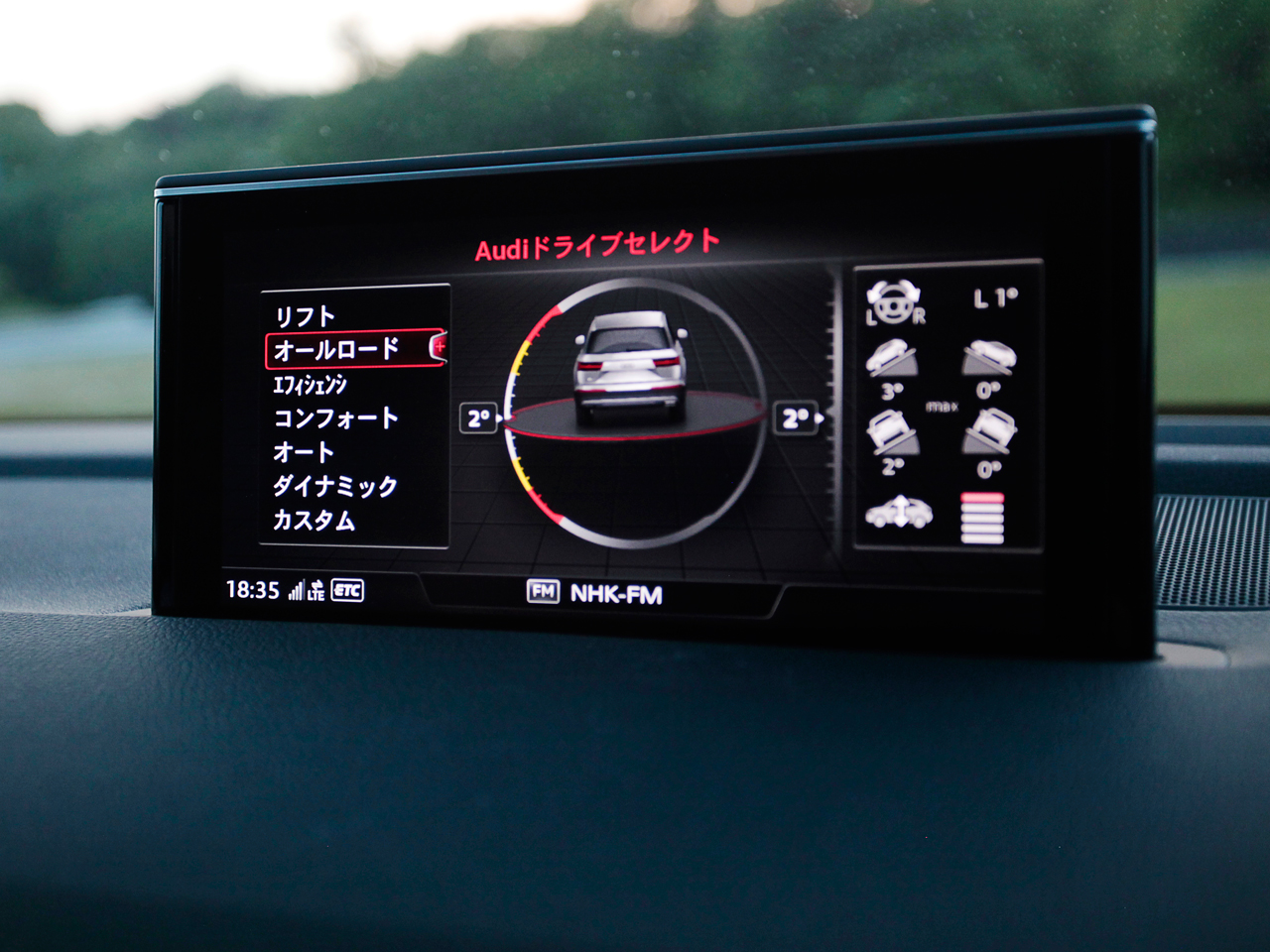 先に触れたアダプティブエアサスペンションパッケージを選択すれば、重い荷物を載せる際、リアの車高を下げられます。ちなみに、アダプティブエアサスペンションとは、各輪のサスペンションを電子制御し、硬軟を瞬時に変えられるもの。デフォルトの「オート」のままでまず不満は出ませんが“Audi ドライブセレクト”を呼び出せば、状況に合わせた走行モードを選べます。
