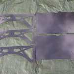 ▲左の肉抜きされた3枚のプレートが脚、右が天板。脚プレートの中央に注目すると切り込みの入り方が異なっていることがわかります