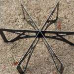 6方向に伸びる脚プレートのおかげで、焚き火台ごと倒してしまうという事故はまずありません。テーブルを移動する際に、手を掛ける位置を間違えると脚がはずれますが、そもそも燃えさかる焚き火台ごと移動させるのは、たとえ焚き火シートのときでも危険です。
