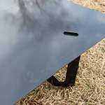 天板にはフチがないので火床が「黒皮 焚き火テーブル」の脚プレートの内側に収まるようにするといいでしょう。