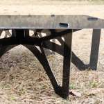 脚に天板を載せるのですが、ただ載せるだけじゃありません。脚の先端にスリットが入っていて、そこに天板の突起を差し込みます。脚と天板のこの形状、じつに芸が細かい! それにこの位置を持てばテーブル全体を持ち上げられるんです。