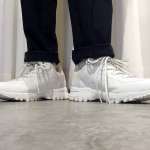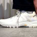 上品で洗練されたウエアを展開するエーグルとは思えない、意外なくらいなゴリゴリのハイパフォーマンスっぷりに惹かれます。高機能なアッパーやソールもさることながら、ダブルシューレースって言うディテール使いは斬新です。ホールド力を高める機能面だけじゃなく、アクセントにもかなり効いています。こんなにワイルドな表情なのに、実はエーグル、っていうギャップに見事にやられました!