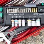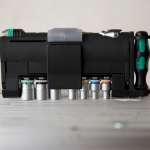 下に収納されている1/4"ソケットは、5.5、6、7、8、10、12、13の7種類。各サイズに色がつけられているのは、“Take it easy”システムを採用しているため。他のツールでもサイズによって迷うことがないよう、形状とサイズによって色分けされているのです。