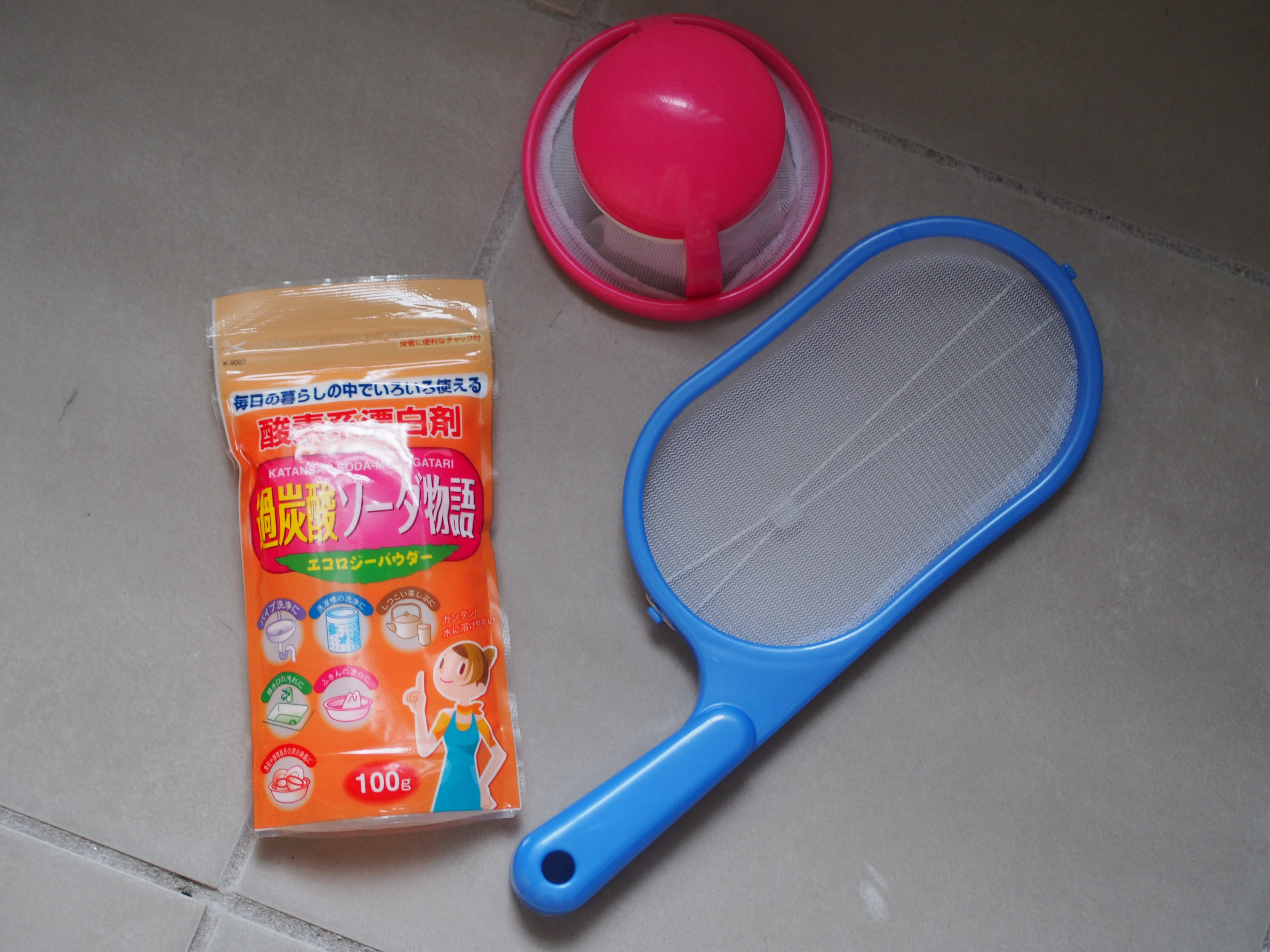 酸素系漂白剤、くずとりネット、お風呂用のゴミとりネット。酸素系漂白剤は5袋購入