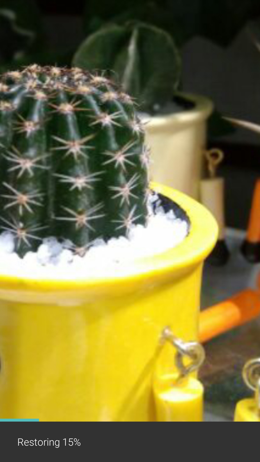 クラウドに保存された写真をライブラリから開くと、自動的にクラウドからのリストアが開始されます。