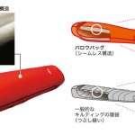 旧モデルのバロウバッグは瓦葺きのように、中綿をとめた縫い目に別の中綿がかぶさるような構造。素材を見直したこと、そして縫い目が少なくなったことも保温性アップと軽量化に貢献しているのでしょう。