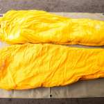並べてみたところ、バロウバッグのほうが大きくふっくら。触った感じもバロウバッグのほうがコシがあります。一方のダウンハガーはしなやかですがくたっと少々頼りない感じ。
