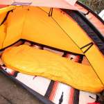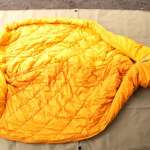 ファスナーを開いてみました。内側に糸ゴムを斜めに装備してストレッチ性を持たせているのはバロウバッグ、ダウンハガーどちらも同じ。