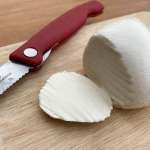 少し持っただけでも潰れてしまう柔らかさにも関わらず、全く潰れず、小刻みに動かしてカットしてもほとんどカスが出ず、断面は滑らか。ちなみに、力を入れずに前後の動きで刃を進めていくと綺麗にカットできます。