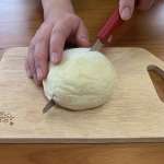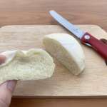 逆にソフトパンに挑戦。柔らかいパンは前後に小刻みに動かして切る波刃より、切りカスが出にくい直刃のほうが向いています。また切れ味が悪いナイフで切ると潰れてしまいますが、そんな心配は無用で、こちらも難なくクリア。